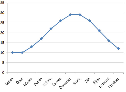 | Půměrná teplota vzduchu | Průměrná teplota moře |